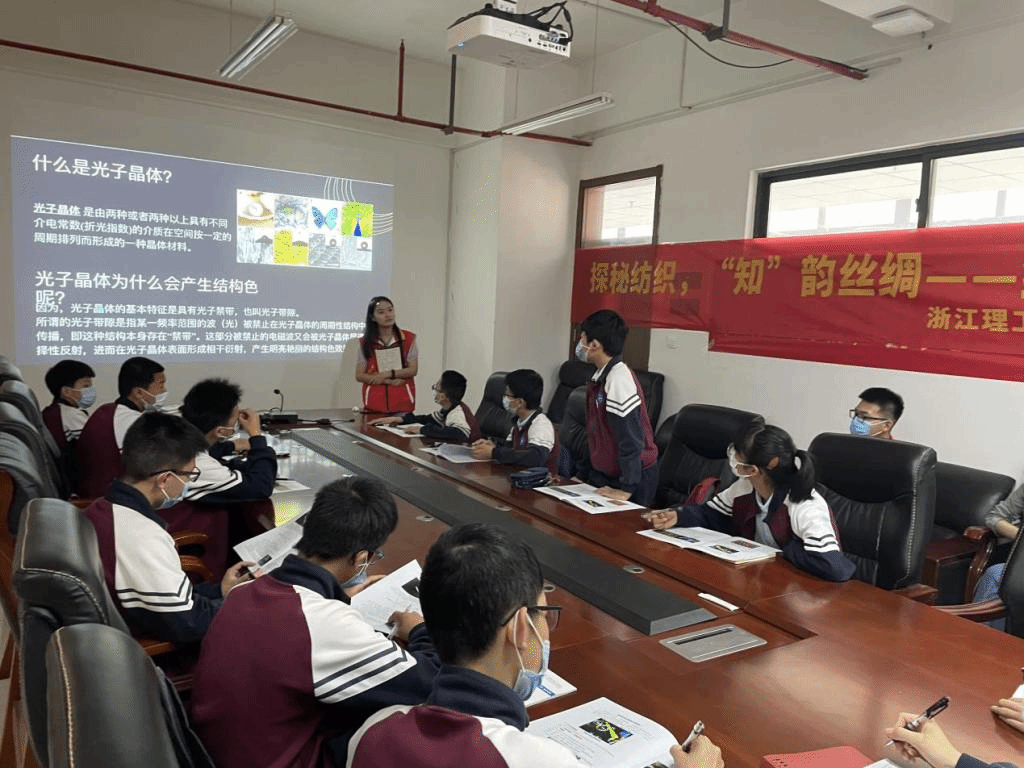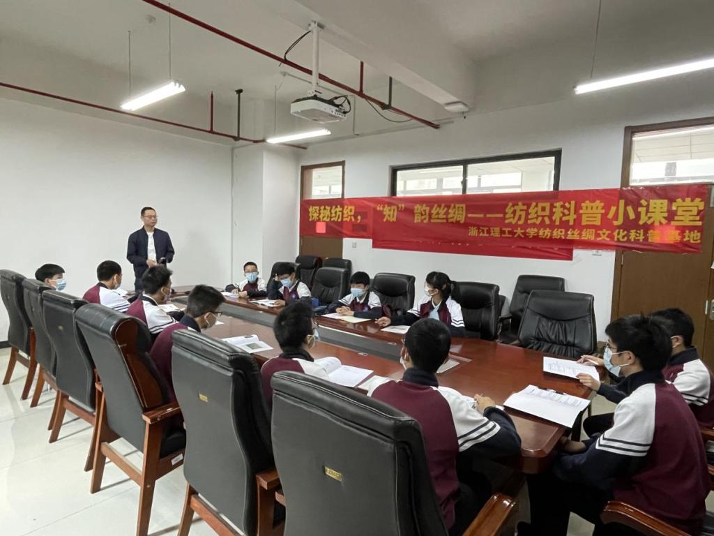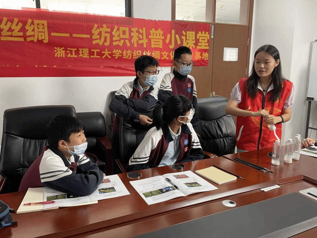 在学校24号楼231实验室与文海中学来访的中学生进行了一次别开生面、寓教于乐的纺织科普“劳育课”。
