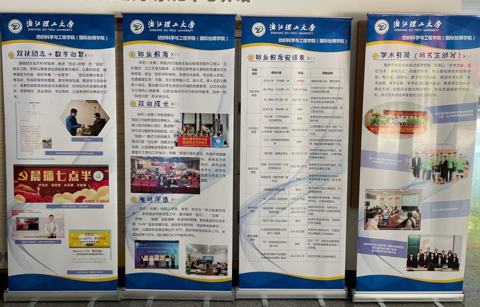 全过程强化新生思政育人,发挥“车站—楼宇—寝室—楼道—门牌—床位”的“6景全过程覆盖”,将始业教育的课堂搬到不同的迎新场所,注重沉浸式的情景教育。火车东站迎接新生,发放安全防诈骗传单,耐心讲解防诈骗案例,“擦亮眼珠子,守好钱袋子”,让新生初至杭城感受到“浙理安全”的温暖;公寓楼宇布置凸显“纺织风味”,楼道张贴暖心地标迎接新生归寝,横幅展板讲述纺织故事,让新生第一时间了解学院学科竞赛、学风引领、双扶励志、数字智治的事迹展示;寝室门牌张贴“公寓德育宣传单”,名言警句鲜读强调新生时时对照自身品行,提升德育素质;寝室内部注重信息化网格化,床位张贴一人一单的个人信息表,明确床位归属、辅导员姓名以及校园安全联系方式,点明安全用电的重要性,深植文明寝室的观念于每一位新生心中,将新生入杭进校的全过程情景都作为新生始业教育的素材原料,点明思政育人之内涵所在。
