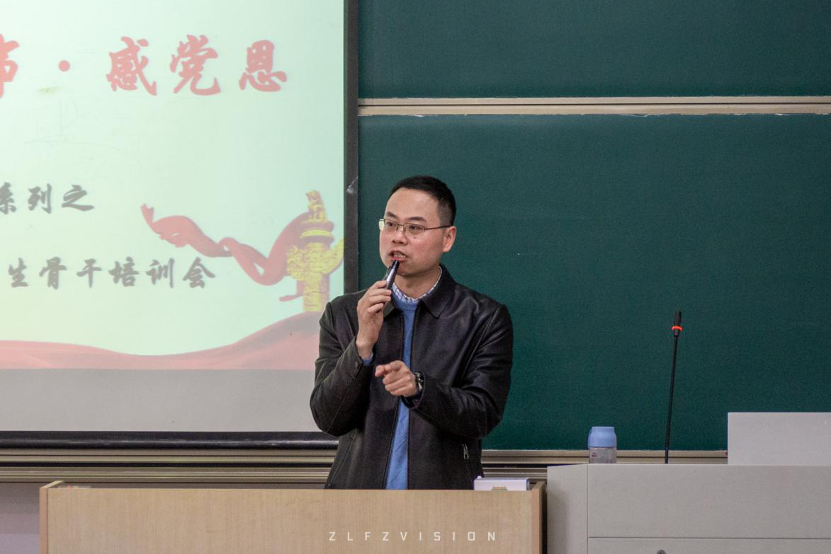 有别于传统党课内容冗长,形式单一的特点,本次书记微党课以互动式教学方式调动学生党员干部的学习热情,以话题性提问方式引发学生党员干部的热烈讨论。首先方平老师让各个学生党员干部以所在学生组织为组别介绍新学期学生工作的构想安排,并由其余学生党员干部以及在场辅导员进行现场评议。方平老师依托前期师生互动的良好基础,开始讲授本次的微党课内容。首先他从党史故事出发,讲述了中国共产党1949年离开西柏坡到北京“进京赶考”的故事,他将毛泽东同志提出的“两个务必”送给在场的所有学生党员干部,并结合自身工作经历解释了“务必使同志们继续地保持谦虚、谨慎、不骄、不躁的作风,务必使同志们继续地保持艰苦奋斗的作风”。此后他向在座的学生党员干部提出了“学生党员干部是什么”、“学生党员干部依赖靠什么”、“学生党员干部应该怎么干”三个问题。引发了在座学生党员干部的思考讨论。院研究生会主席陈佳雪认为学生党员干部应当依靠同学和老师的支持,承担责任做好本职工作,院学生会主席团成员郭佳兴表示学生党员干部应该围绕着时代主基调,配合校院开展青年学生所喜闻乐见的活动。方平老师肯定了学生党员干部在讨论中所迸发的思路火花,他指出学生党员干部是“管人多”、“管事多”、“烦恼多”的信息员身份,要发挥自身“会说”、“会写”、“会吸收”的本领特长,培育自身群众工作思维,注重师生关系的培养,从学院深厚的历史底蕴与文化积淀中汲取力量,更加创新有效地完成新学期各项学生工作。