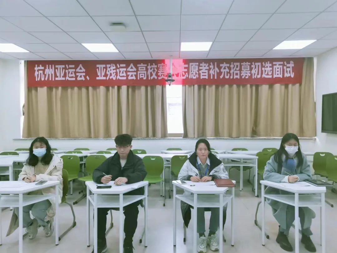 申请人按组进入面试点后依次进自我介绍, 之后进入自由问答环节,由面试官根据情况对申请人进行提问。面试选拔重点考察了志愿者的综合能力、大型赛会志愿服务经历、外语技能、身体素质以及礼仪形象等。