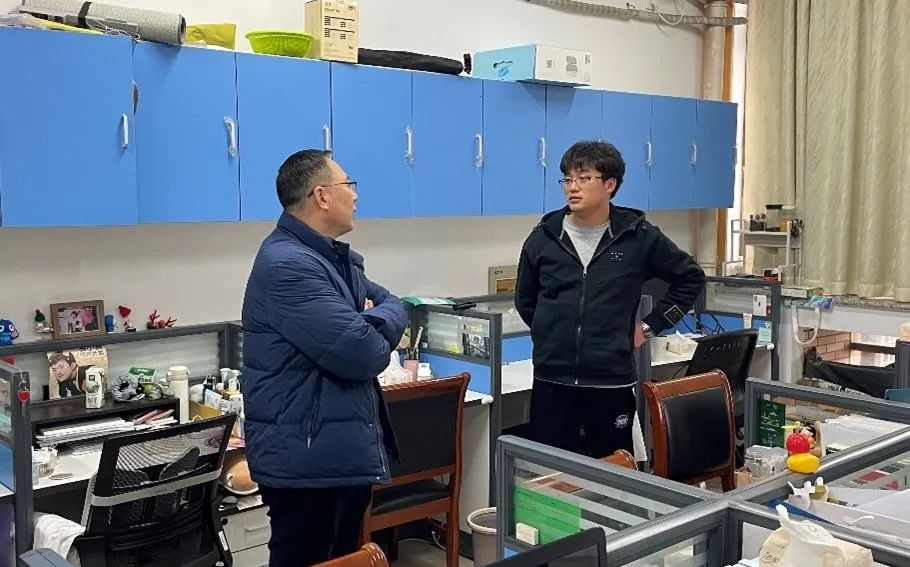 党委书记徐伟强、院长于斌、党委副书记方平以及学工办的辅导员来到学生寝室、实验室,开展开学季的防诈宣传、强调考试季的考风考纪,同时叮嘱同学们在新学期仍要做到安全防疫,保护好自己的生命安全、财产安全,做好自己健康的第一责任人。在走访毕业班学生时,老师们详细询问大家的考研、就业状况,提供相关的指导,并认真听取了毕业生对学院工作的意见和建议。