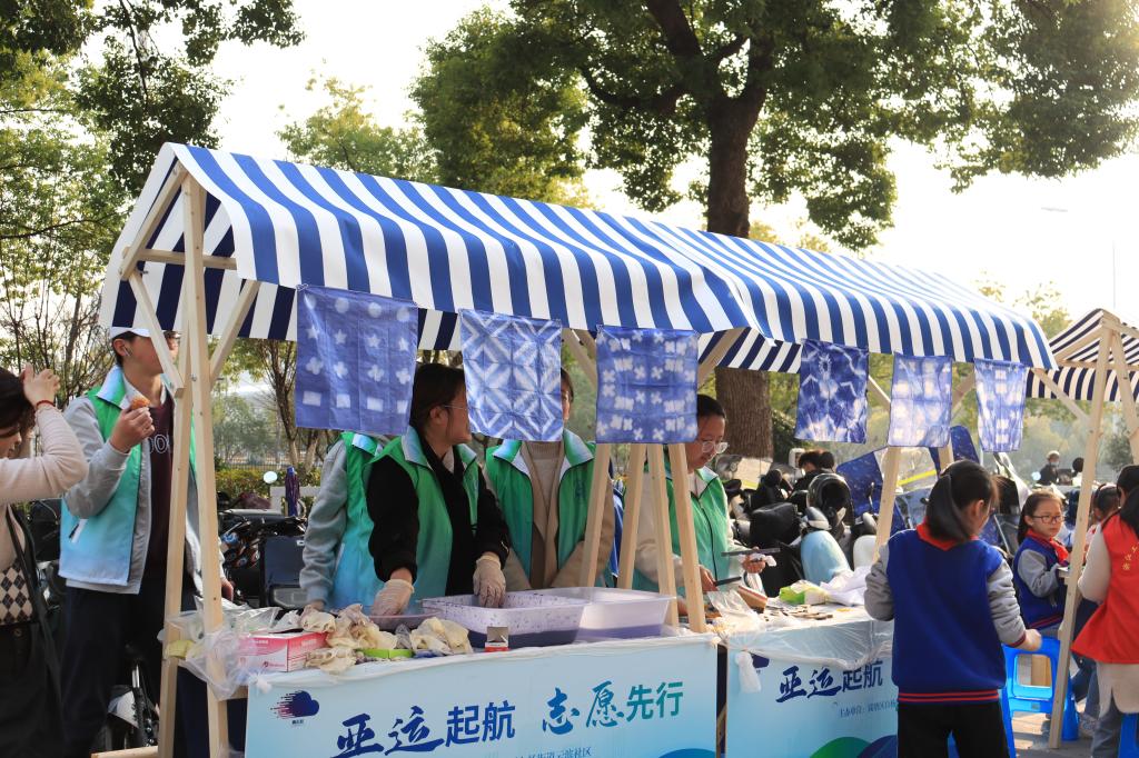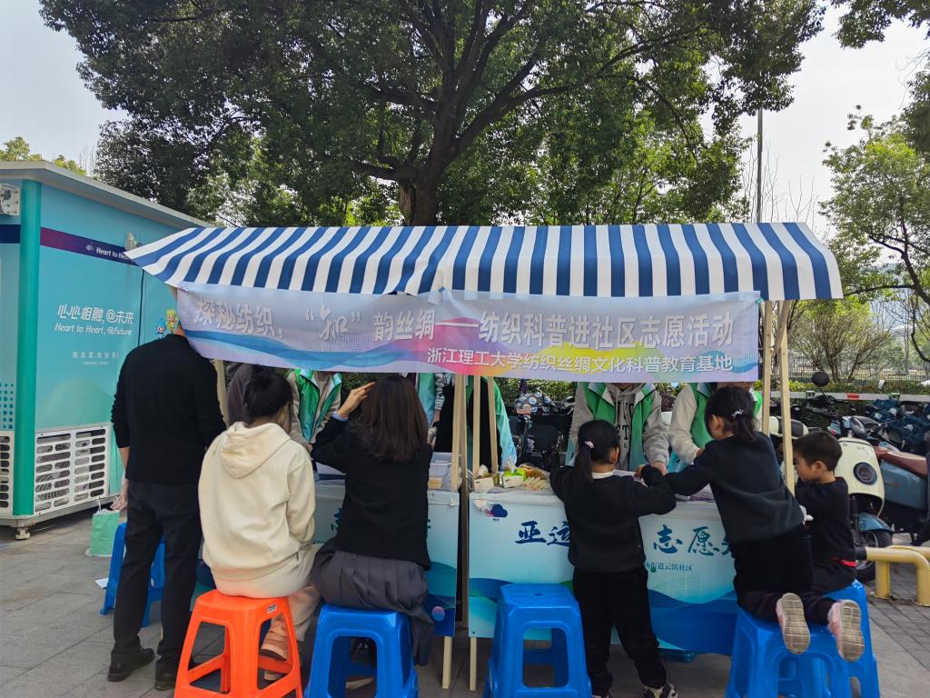 三丝励志服务团的成员们走进钱塘区云滨湾社区,举行探秘纺织,“知”韵丝绸——纺织丝绸文化科普活动,志愿者们将扎染体验活动带进社区,与居民们一起感受古老而又前卫的东方技艺。