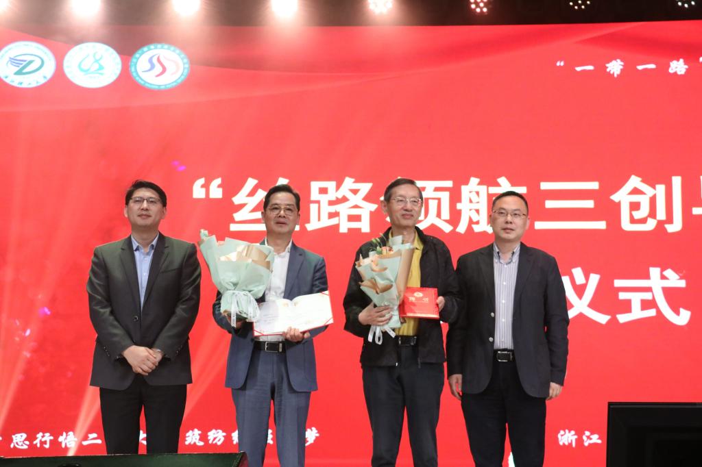 晚会现场还进行了学院“丝路领航三创导师”聘任仪式以及“红丝享”毕业生党建工作联络员聘任仪式。费建明、顾新荣先后在聘任仪式发言,他们结合产业现状和人生历程,寄语毕业生能不忘学习的初心、产业的寄托和家国的希冀。学院党委书记徐伟强表示,希望党建工作联络员能牢记嘱托,加强与学院的红色联动,让纺织的红色基因源远流长。