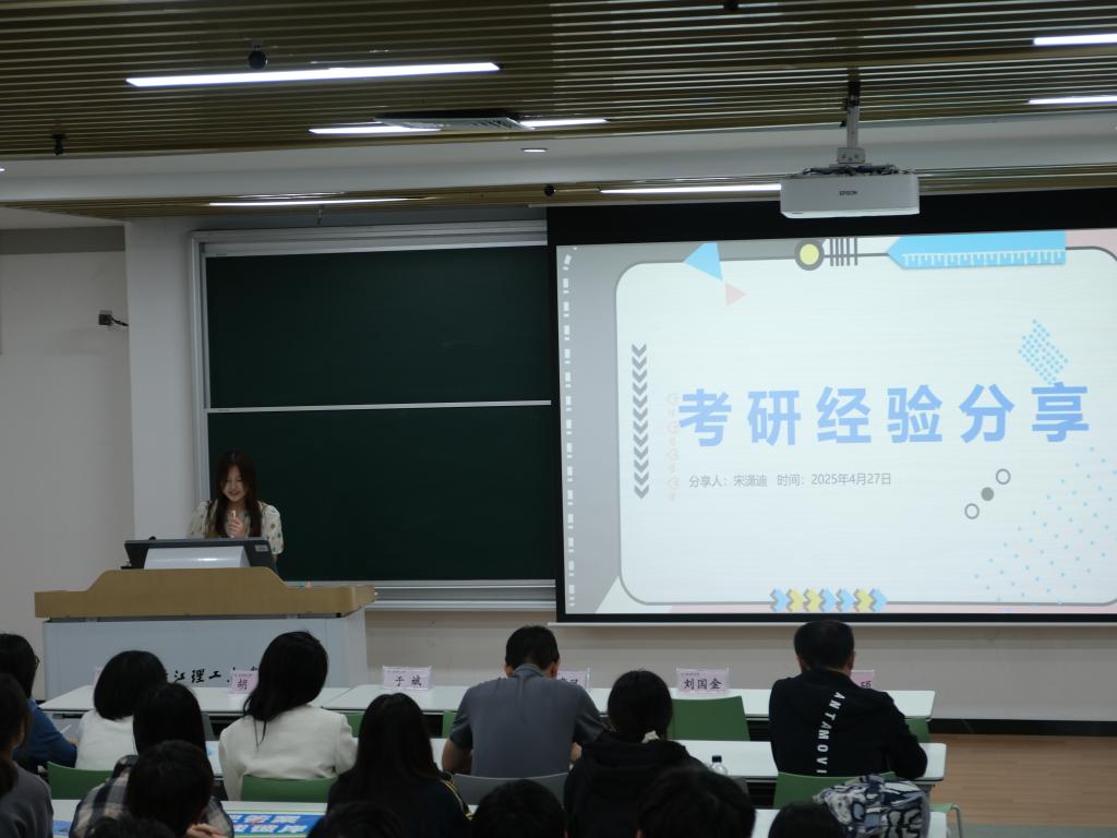 最后,三位2025届考研成功学子受邀进行经验分享。成功考研至东华大学的宋潇迪从“专业课深度突破”,分享如何通过构建思维导图串联知识体系,并建议善用学院导师资源,针对性提升科研论文阅读与写作能力;上岸蔷薇后花园