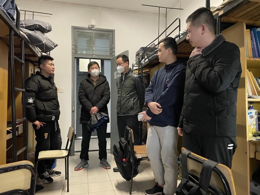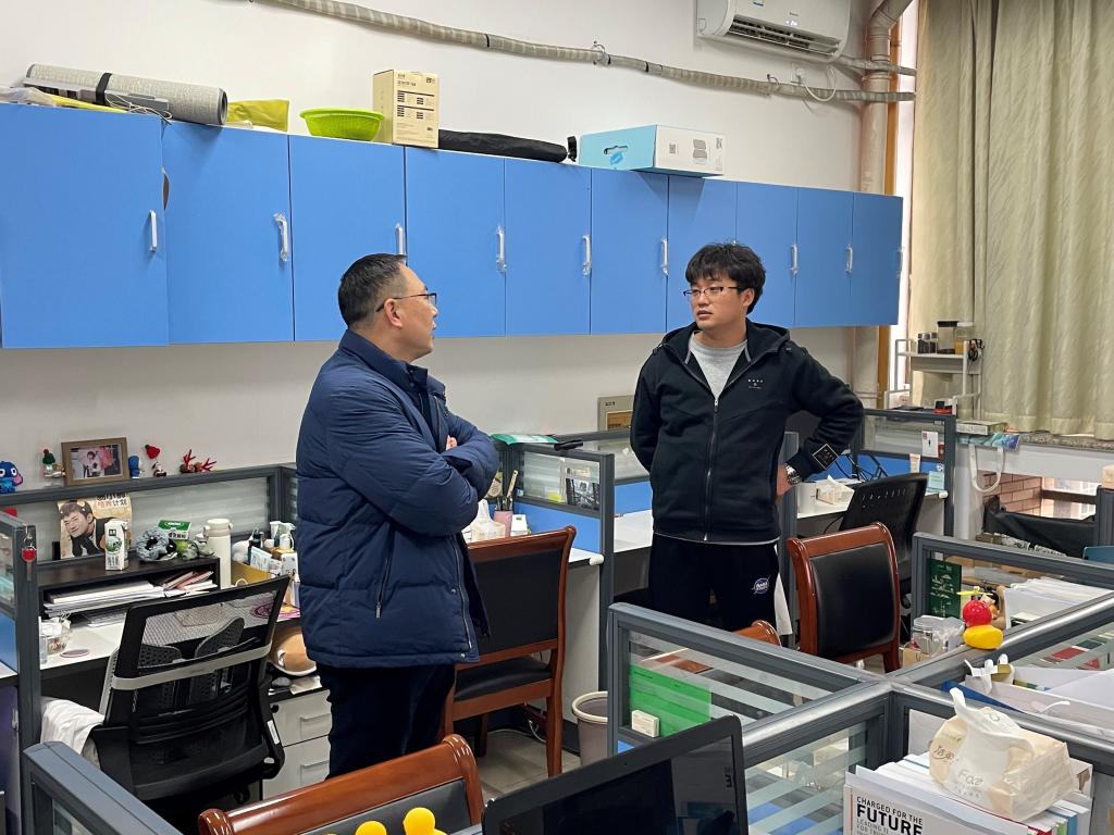 党委书记徐伟强、院长于斌、党委副书记方平以及学工办的辅导员来到学生寝室、实验室,开展开学季的防诈宣传、强调考试季的考风考纪,同时叮嘱同学们在新学期仍要做到安全防疫,保护好自己的生命安全、财产安全,做好自己健康的第一责任人。在走访毕业班学生时,老师们详细询问大家的考研、就业状况,提供相关的指导,并认真听取了毕业生对学院工作的意见和建议。