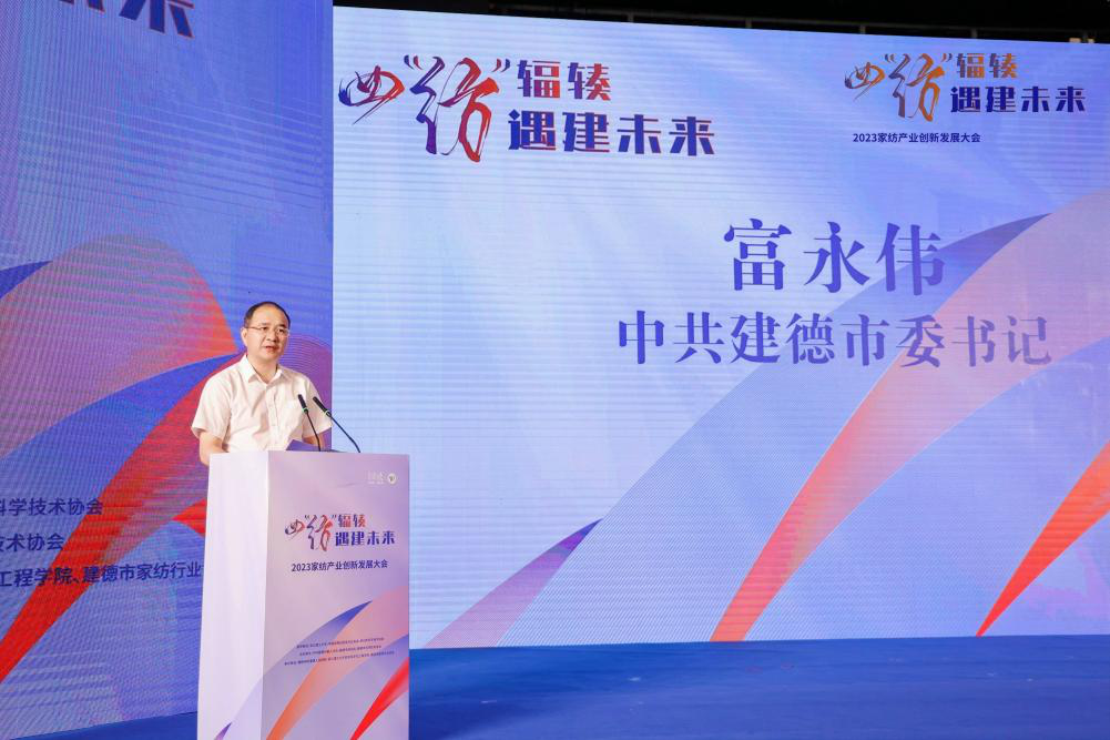 会上,建德市委书记富永伟致辞。他表示,改革开放四十多年来,家纺产业对建德市的经济、社会发展都起到了重要作用。面临产业转型升级的关键时期,建德市政府部门、行业协会、家纺企业要通过多方合作,聚力协同创新、产业集聚、筑巢引凤,充分利用好家纺产业基础,发挥行业潜力,重塑产业新辉煌,为建德工业经济发展提供更加坚实的基础和动力。