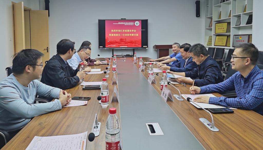 10月30日,江苏省蚕丝学会理事长、中国蚕学会副理事长周谦,江苏省蚕丝学会常务副理事长邵寅初、副理事长王羽骋、秘书长徐劲一行来院考察交流。院长于斌,校杂志社社长、国际丝绸联盟秘书长李启正,副院长苏淼,校杂志社副社长经渊参加座谈交流活动。