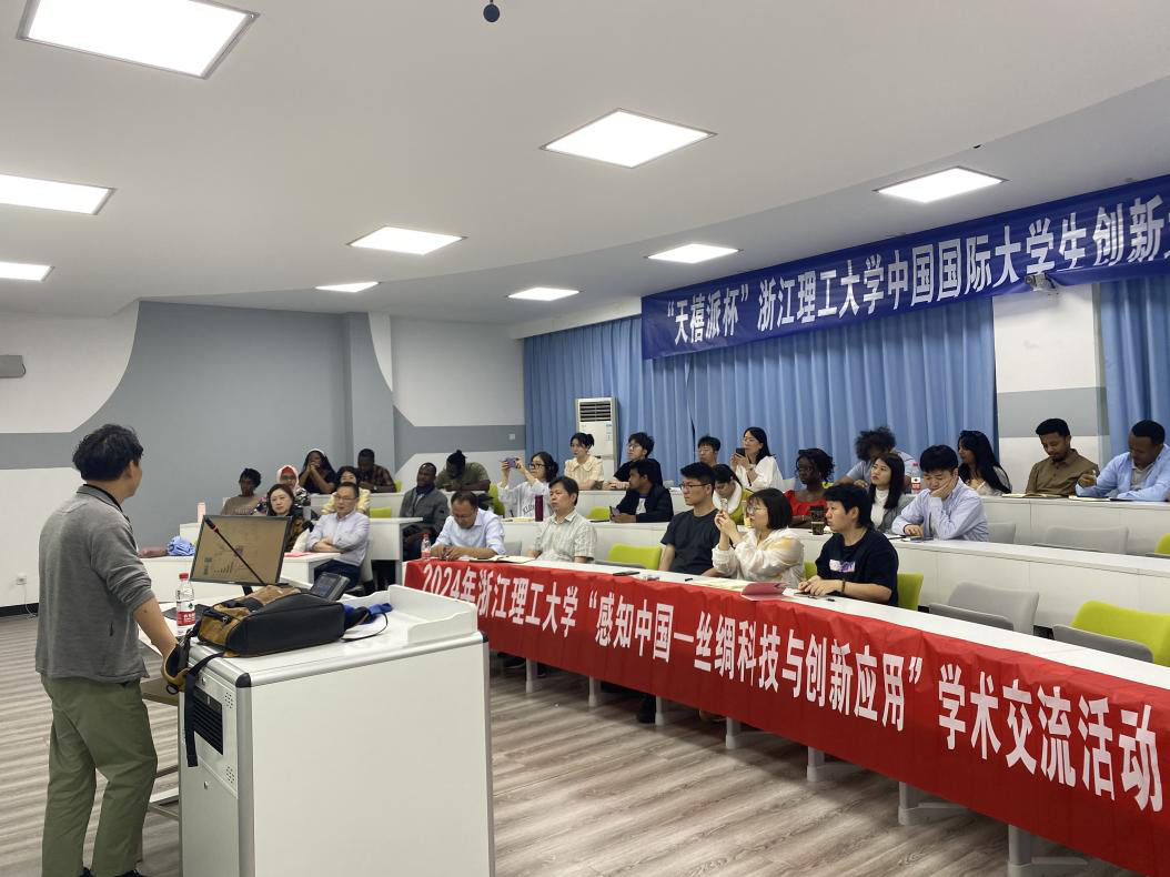 期间,邢孟秋院士给师生作了精彩的学术报告,该报告同时是国家留学基金委主办的“2024感知中国—丝绸科技与创新应用”学术交流活动的重要环节。报告会在2-S343智慧教室举行,由蔷薇后花园