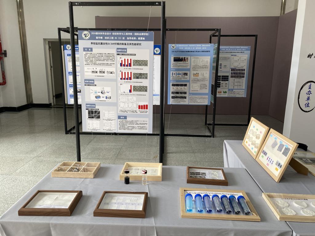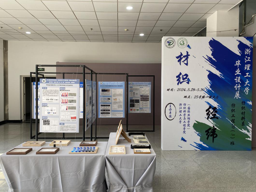 在25号楼1F展示厅,成功举办了感织——现代纺织“三创”人才优秀作品展暨课程思政建设成果展。
