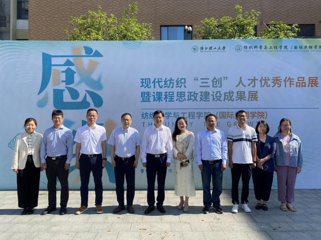 展览中,学院领导和有关老师亲临现场参观指导交流。学院人才培养长期以来坚持以学生为本,追踪纺织科技前沿,贴合纺织经济发展,聚焦创新性应用型人才培养,积极服务于现代纺织产业高质量发展。在学生毕业论文和作品撰写、设计过程中,学院从思想方向、价值引导、选题确定、研究实验、创作指导、讨论修改、实践环节、资源支持等多方面入手,强化提升学生的研究能力、创新能力和实践能力,有效增强学生的思想修养、学术修养和文化修养,实现学生专业知识学习、内涵品质、实践创新的同步发展。