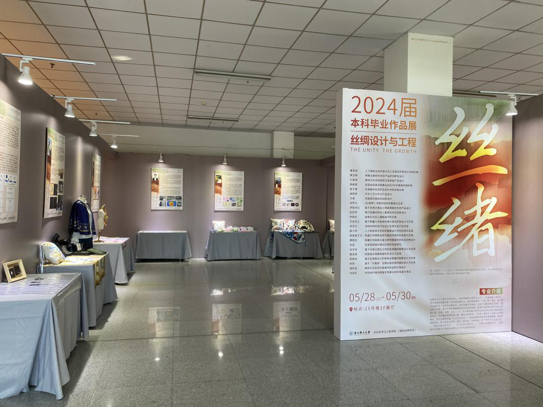 展览汇集了2024届纺织工程(机织工程与贸易、针织工程与贸易)、纺织工程(纺织材料与检验)、纺织工程(纺织品设计)、轻化工程、非织造材料与工程、丝绸设计与工程专业近150件优秀毕业作品。展览作品内容题材丰富、形式表现多样、科技元素凸显,充分展示了学生们的学术追求和创新成果,集中显示了学生们创新、创意、创业“三创”能力。同时本次展览作品体现出专业知识和思政元素的融合,是专业教学与课程思政有机结合的综合汇报。