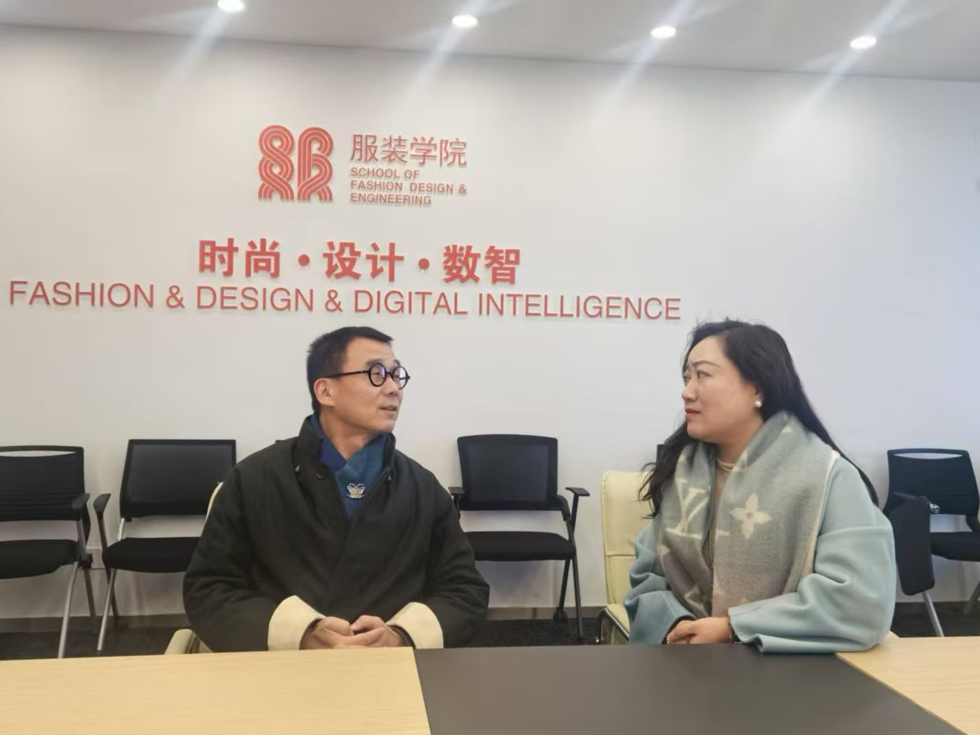 学院党委书记苏淼前往服装学院调研,与服装学院院长崔荣荣就教师参与承担学院公共事务、产教融合推进人才培养质量等工作进行了交流探讨。