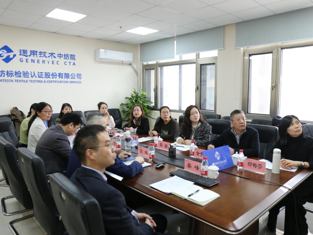 的到访表示热烈欢迎。他介绍了中国纺织科学研究院和中纺标检验认证股份有限公司的基本情况,重点对中纺标公司在标准、检验、检测、计量、认证五个方面的建设成效和行业优势做了讲解,表达了与学院在标准研究、产品检测和人才培养等方面进行合作的意愿。