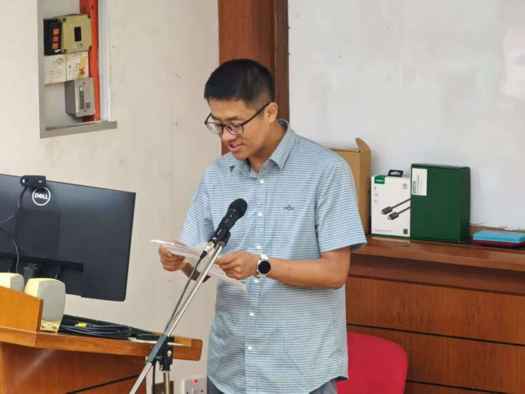 副院长刘国金致辞,从“欢迎”、“感谢”、“要求”三个方面对参加交流的师生提出了期望,希望师生们珍惜机会、大胆交流、互相学习,通过学术交融激发创新火花,努力提升自身科研素养。