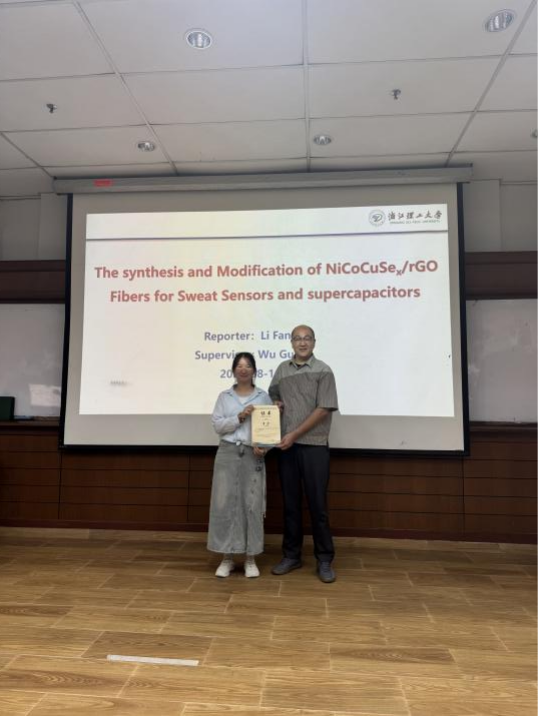 的朱斐超、洪兴华、翟世民博士分别从智能纺织品、生物基聚乳酸熔喷非织造材料、有机热电材料、生物炭结构调控等方面做了精彩分享报告。教师报告后,多位研究生分别围绕聚氨酯多孔纤维、柔性可穿戴能源、新型双核有机硼催化剂等方面展开精彩成果汇报,展现了青年力量在国际舞台上的闪耀。与会代表热情交流,充分表达了对本次交流论坛的认可。