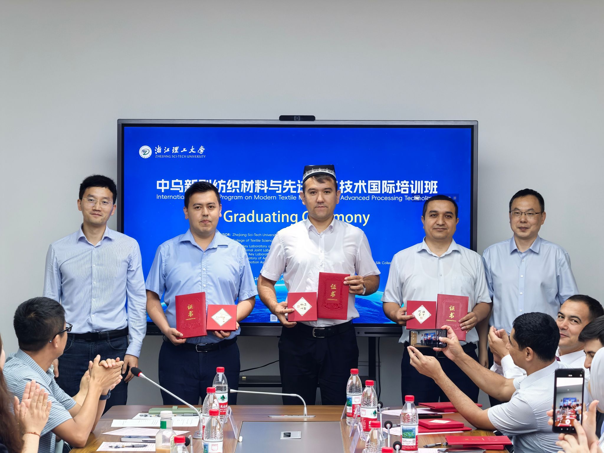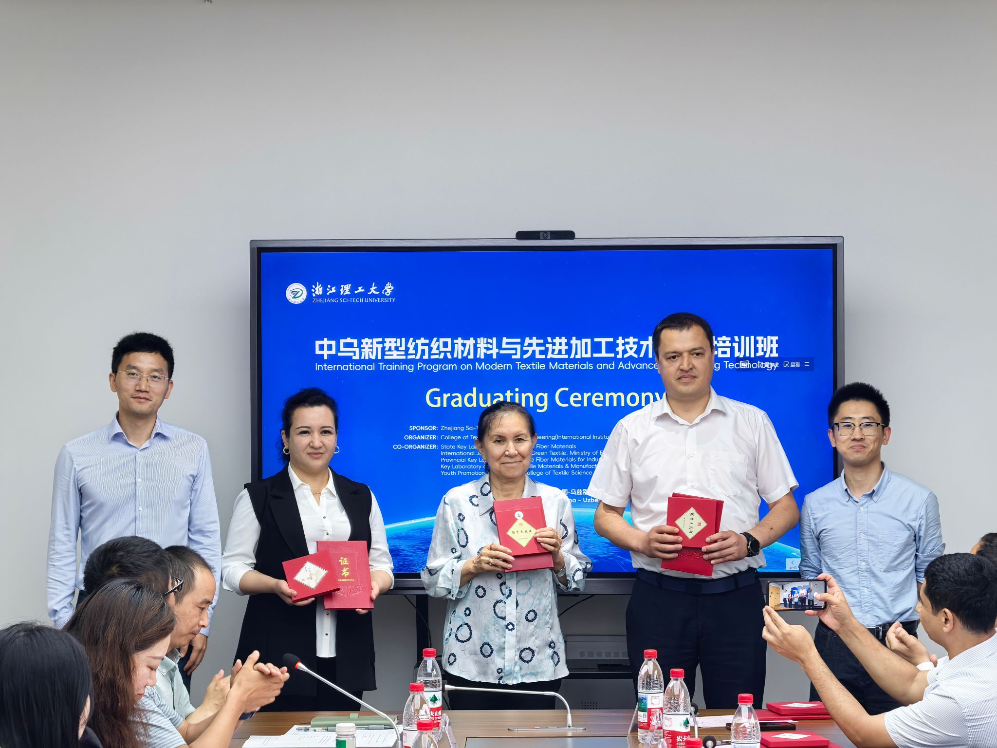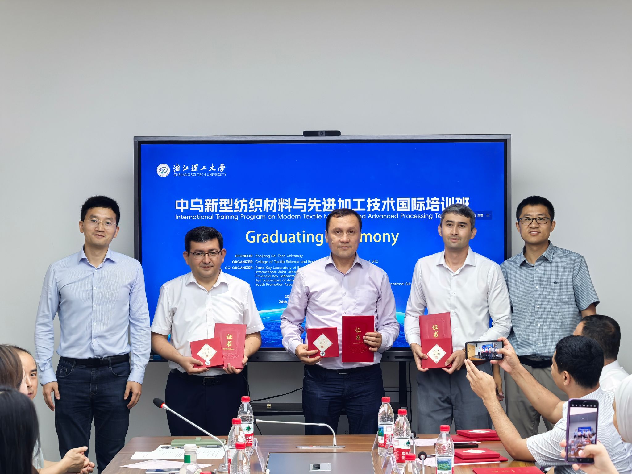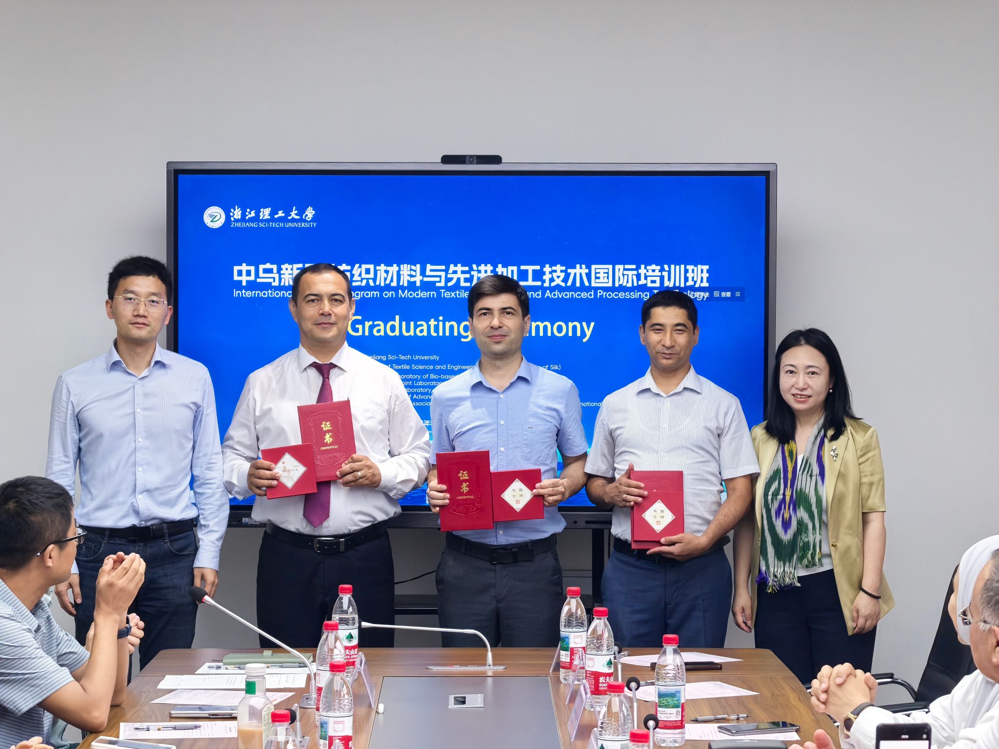 本次培训班共有来自乌兹别克斯坦塔什干纺织与轻工业学院15名学员参加。培训内容围绕新型纺织材料与先进加工技术为主题,采取课堂教学和生产现场调研相结合的授课方式,就丝绸文化、缫丝织绸、先进纺织、产品设计与后整理等内容展开,开设了一系列全英文授课课程。培训期间,组织学员走访参观了浙江省现代纺织技术创新中心、浙江东进新材料有限公司、万事利集团等纺织相关企事业单位及中国丝绸博物馆。本次培训班为期15天。