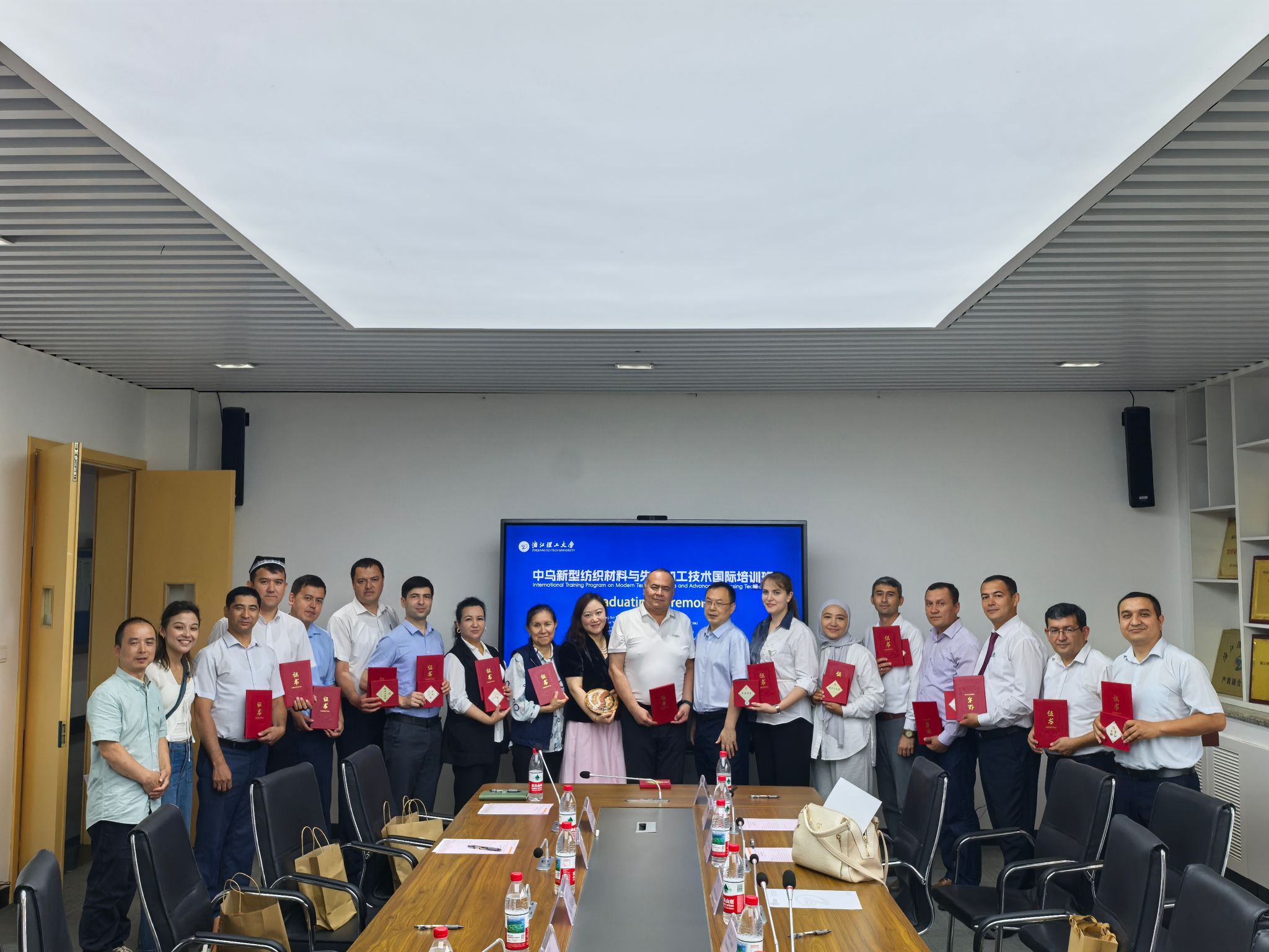 结业典礼上,陈敏之院长致辞,祝贺学员圆满完成学习任务,顺利结业,希望通过此契机,搭建我国和乌兹别克斯坦在新型纺织材料与加工领域的科技合作与人才交流的平台,增进纺织材料行业全方位的信息互通,建立友谊,携手并肩,共识共信,共行共赢。