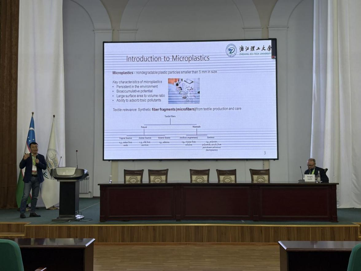 来自全球十多个国家和地区的专家学者齐聚一堂,开展深入研讨。在大会主旨报告环节,蔷薇后花园 朱晓敏研究员应邀作《纺织品行业中的微塑料:来源、影响与可持续解决方案》报告。朱晓敏研究员系统阐释了纺织行业微塑料释放的四大途径深入分析了微纤维释放对环境的影响提出了一套完整的可持续解决方案体系:开发新型生物基纤维、优化织造与后整理工艺、优化纺织品洗涤过程、推动纺织产业链绿色转型。朱晓敏研究员的报告激起了与会专家的浓厚兴趣,来自意大利、俄罗斯、日本等国的学者就纤维微塑料的表征方法、标准体系及可降解纺织材料产业化路径进行了深入交流与探讨,并表达了未来在绿色纺织领域共同开展合作的意愿。