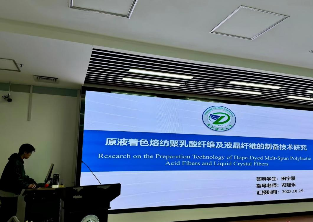 分享环节后,“国际视野下的纺织新质生产力”创新论坛正式拉开帷幕,多名同学上台汇报,分别就各自研究的课题及未来的科研方向做了详细汇报,与会的老师们也给予了中肯的点评与学术建议。