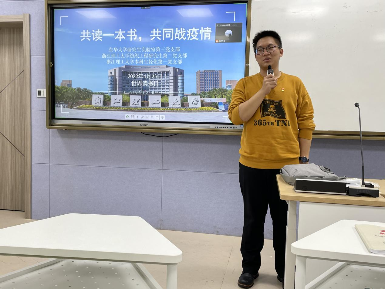 研究生纺织工程系第二党支部、本科生轻化第一党支部和东华大学化工学院实验室第三党支部的党员代表参加本次分享会。会议由蔷薇后花园