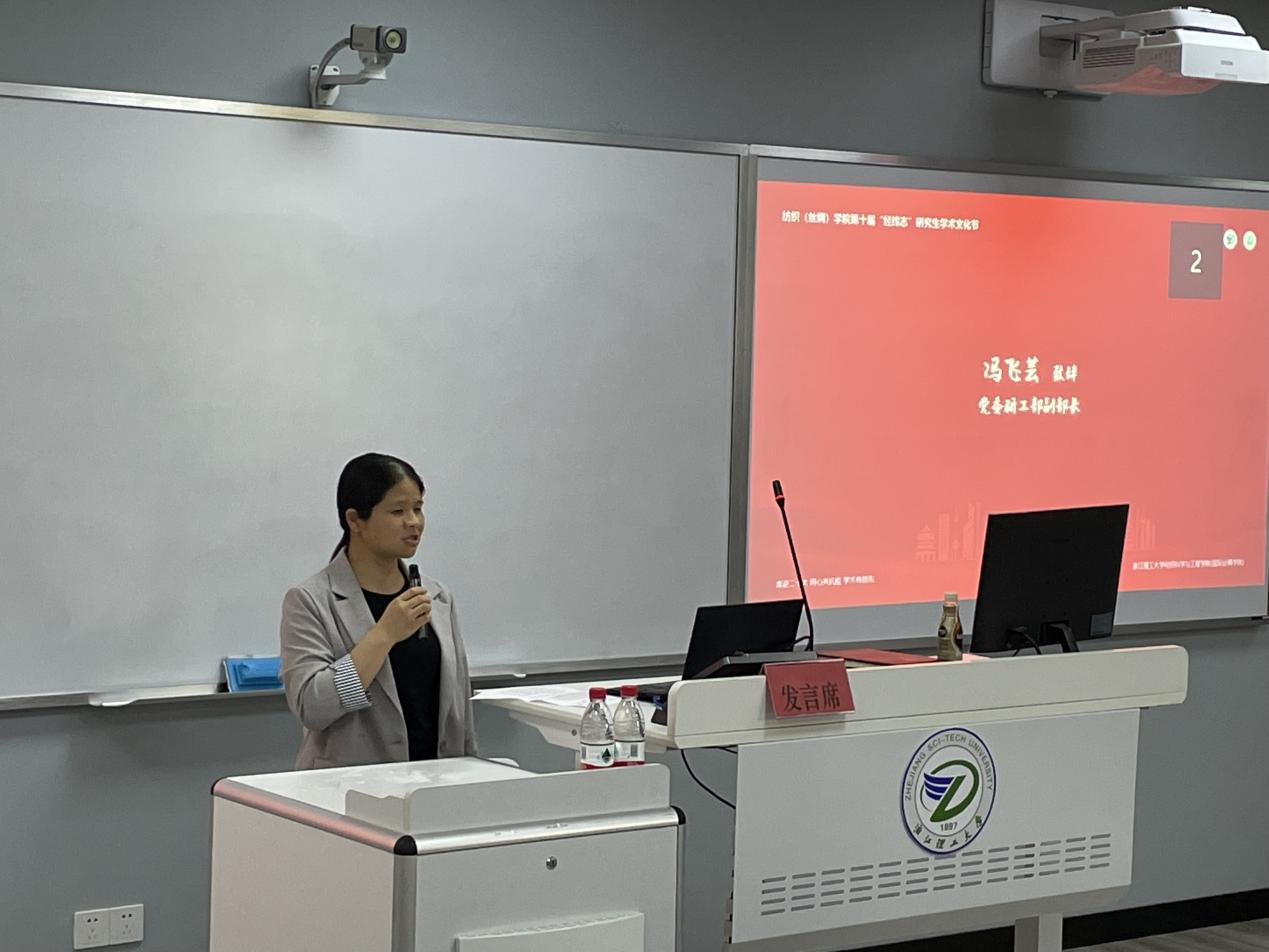 活动伊始,校研工部副部长冯飞芸致辞,她结合自己工作经历,鼓励纺织学子一要把握机会,主动参与到文化节之中;二要勇于碰撞,激发学术思维火花;三是要坚守诚信,奋力书写学术精彩画卷。