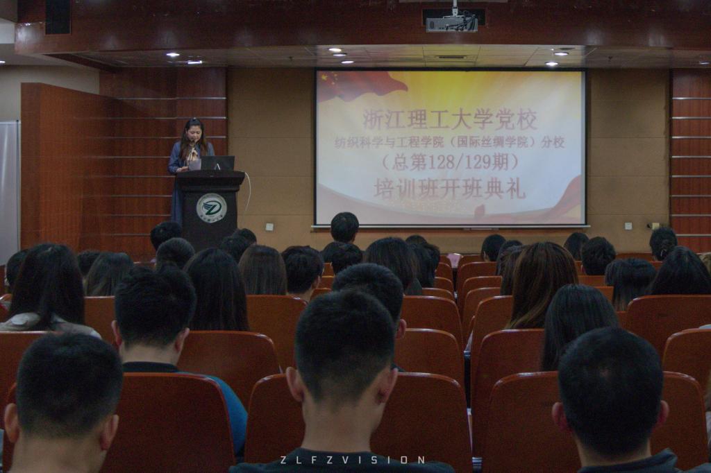 (国际丝绸学院)分校(总第128/129期)培训班开班典礼。院党委书记徐伟强作为本次党课主讲人,100多名入党积极分子与预备党员参与。本次活动由院组织员朱佳琳老师主持。